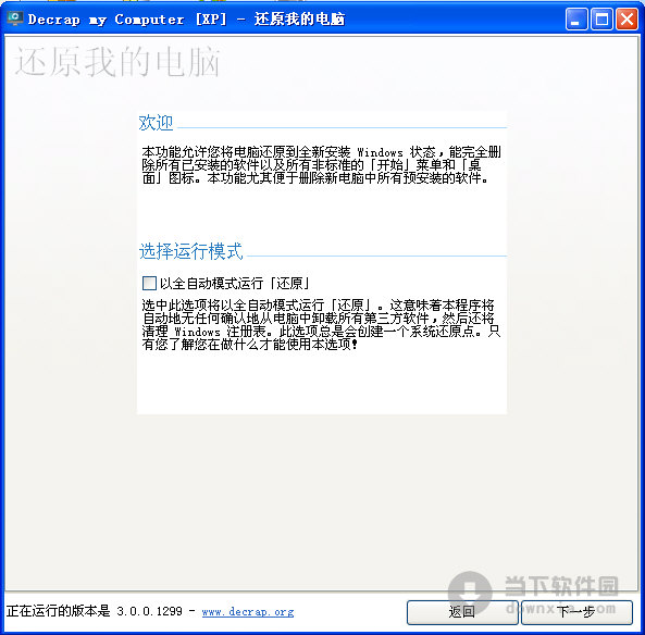 软件名称:decrap my computer(还原我的电脑) V3.0.0.1299 官方版 软件大小:4374KB 软件语言:简体中文 软件类别:国产软件/免费软件/卸载清除 运行环境:Win2003, WinXP, Win2000, Vista, Win7 软件简介: decrap my computer是一款可以帮助用户进行卸载程序的软件。 decrap my computer(还原我的电脑) V3.0.0.1299 官方版 下载 decrap my computer(还原我的电脑) V3.0.0.1299 官方版 迅雷下载 下载页面:http://www.downxia.com/downinfo/39461.html