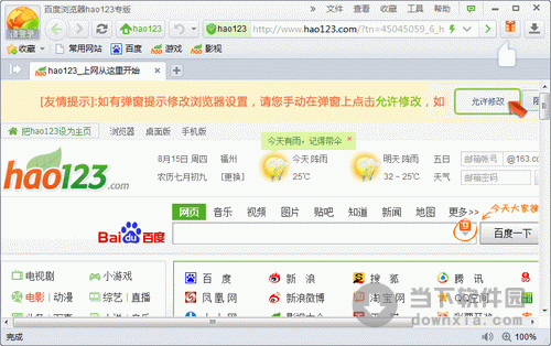 软件名称:百度浏览器hao123专版|hao123浏览器 V1.2 官方安装版 软件大小:564KB 软件语言:简体中文 软件类别:国产软件/免费软件/主页浏览 运行环境:Win2003, WinXP, Win2000, Vista, Win7 软件简介: 百度浏览器hao123专版是百度专为hao123特别定制的hao123浏览器,深度集成了上亿网民每天正在使用的hao123上网导航。 百度浏览器hao123专版|hao123浏览器 V1.2 官方安装版 下载 百度浏览器hao123专版|hao123浏览器 V1.2 官方安装版 迅雷下载 下载页面:http://www.downxia.com/downinfo/39507.html