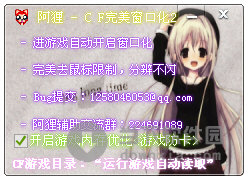 软件名称:cf游戏窗口化工具|阿狸CF完美窗口化 V2.3 绿色版 软件大小:706KB 软件语言:简体中文 软件类别:游戏视频/免费软件/游戏工具 运行环境:Win2003, WinXP, Win2000, Vista, Win7 软件简介: 阿狸CF完美窗口化是一款小巧、简单,安全防封号的cf游戏窗口化工具,用户在开启该软件后会提示初始化成功,进入游戏之后就能够自动开启窗口化了。 cf游戏窗口化工具|阿狸CF完美窗口化 V2.3 绿色版 下载 cf游戏窗口化工具|阿狸CF完美窗口化 V2.3 绿色版 迅雷下载 下载页面:http://www.downxia.com/downinfo/39531.html