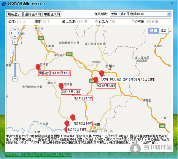 软件名称:台风实时查询|台风实时查询 V1.0 绿色版 软件大小:768KB 软件语言:简体中文 软件类别:国产软件/免费软件/杂类工具 运行环境:Win2003, WinXP, Win2000, Vista, Win7 软件简介: 台风实时查询是一款能够查询台风最新动态的工具,这款工具中的台风数据来自温州台风网、中国台风网两大权威网站,能够确保数据的准确性。 台风实时查询|台风实时查询 V1.0 绿色版 下载 台风实时查询|台风实时查询 V1.0 绿色版 迅雷下载 下载页面:http://www.downxia.com/downinfo/39535.html