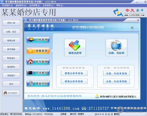 软件名称:零天婚纱服装租赁管理系统|零天婚纱服装租赁管理系统 V13.0815 官方最新版 软件大小:7727KB 软件语言:简体中文 软件类别:国产软件/免费软件/行业软件 运行环境:Win2003, WinXP, Win2000, Vista, Win7 软件简介: 零天婚纱服装租赁管理系统是一款操作简单、功能丰富的婚纱、服装租赁管理软件,进、销、存一体化的人性设计,让用户快速上手使用,对商品进、销、存及利润等财务状况了如指掌。 零天婚纱服装租赁管理系统|零天婚纱服装租赁管理系统 V13.0815 官方最新版 下载 零天婚纱服装租赁管理系统|零天婚纱服装租赁管理系统 V13.0815 官方最新版 迅雷下载 下载页面:http://www.downxia.com/downinfo/39539.html
