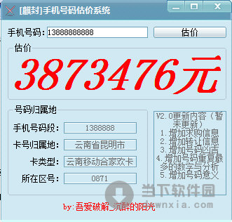 软件名称:手机号码估价器|手机号码估价系统 V1.0 绿色版