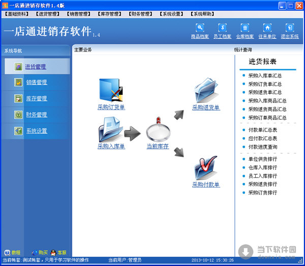 软件名称:一店通进销存软件|一店通进销存软件 V1.4 官方最新版 软件大小:6224KB 软件语言:简体中文 软件类别:国产软件/免费软件/行业软件 运行环境:Win2003, WinXP, Win2000, Vista, Win7 软件简介: 一店通进销存软件是一款界面简洁、操作简单、功能实用的进销存管理软件,它具有详细的进货管理、销售管理、存货管理等综合性行业管理功能. 一店通进销存软件|一店通进销存软件 V1.4 官方最新版 下载 一店通进销存软件|一店通进销存软件 V1.4 官方最新版 迅雷下载 下载页面:http://www.downxia.com/downinfo/41519.html