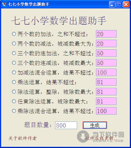 软件名称:七七小学数学出题助手|七七小学数学出题助手 V1.0 绿色版