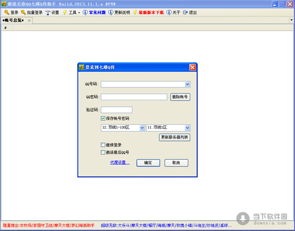 软件名称:qq七雄q传辅助|超级无敌QQ七雄Q传助手 2013.11.1.a 绿色免费版 软件大小:12481KB 软件语言:简体中文 软件类别:游戏视频/免费软件/游戏工具 运行环境:Win2003, WinXP, Win2000, Vista, Win7 软件简介: 超级无敌QQ七雄Q传助手是专用于《七雄q传》游戏的辅助工具,它的功能丰富并且实用,可以帮助用户更加轻松更加尽兴地享受游戏. qq七雄q传辅助|超级无敌QQ七雄Q传助手 2013.11.1.a 绿色免费版 下载 qq七雄q传辅助|超级无敌QQ七雄Q传助手 2013.11.1.a 绿色免费版 迅雷下载 下载页面:http://www.downxia.com/downinfo/42450.html