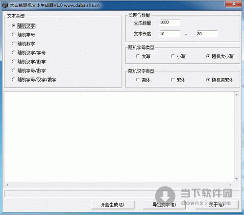 软件名称:大白鲨随机文本生成器|大白鲨随机文本生成器 V1.0 绿色免费版 软件大小:393KB 软件语言:简体中文 软件类别:国产软件/免费软件/杂类工具 运行环境:Win2003, WinXP, Win2000, Vista, Win7 软件简介: 大白鲨随机文本生成器是一款可以一键生成随机文本的软件,该软件能够生成汉子、字母、数字以及相关组合的文本。 大白鲨随机文本生成器|大白鲨随机文本生成器 V1.0 绿色免费版 下载 大白鲨随机文本生成器|大白鲨随机文本生成器 V1.0 绿色免费版 迅雷下载 下载页面:http://www.downxia.com/downinfo/42457.html