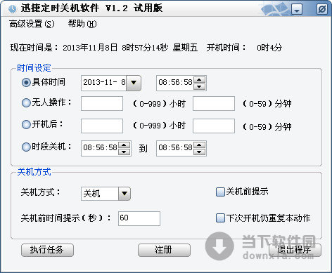 软件名称:迅捷定时关机软件|迅捷定时关机软件 V1.2 绿色版 软件大小:670KB 软件语言:简体中文 软件类别:国产软件/免费软件/开关定时 运行环境:Win2003, WinXP, Win2000, Vista, Win7 软件简介: 迅捷定时关机软件是一款功能非常强大的定时关机软件,这款软件支持具体时间关机、无人操作关机、开机后多久关机、时段关机. 迅捷定时关机软件|迅捷定时关机软件 V1.2 绿色版 下载 迅捷定时关机软件|迅捷定时关机软件 V1.2 绿色版 迅雷下载 下载页面:http://www.downxia.com/downinfo/42459.html
