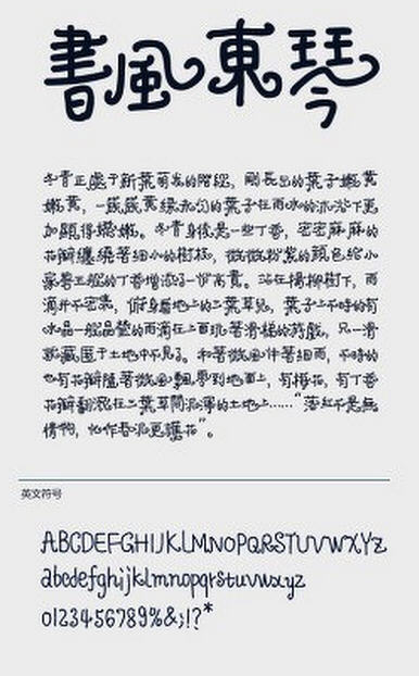造字工房手绘字体由字体设计师手写完成,创造了与众不同的手绘卡通风格,造型个性潮流。造字工房手绘字体适用于唱片、卡通、儿童、青春主题等系列标题或正文用字。