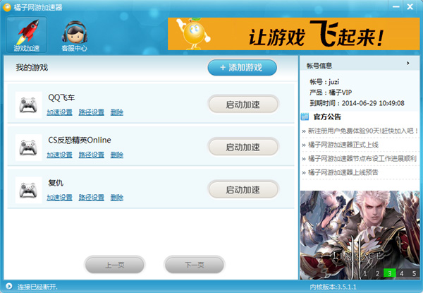[网络辅助] 橘子网游加速器 3.5.0.0 免费版