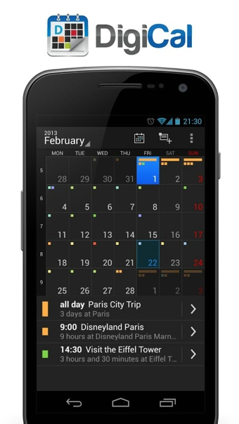 DigiCal体验最时尚的Holo light和dark Android日历应用,拥有6个强大的视图和5个精美的小部件。DigiCal安卓版现在还提供天气预报及简体中文支持!