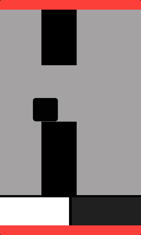 首先声明,不喜欢挑战的玩家可能不会喜欢,你会抓狂。伴随着美妙舒缓的钢琴曲,又一款让你的抓狂的游戏疯狂的黑白块儿即将出现在你的屏幕!当出现白块儿时,玩家需要点击下方的白色条幅,以保持白块儿穿过前方的管道缝隙;当黑块儿出现时,玩家相应的点击下方黑色条幅即可!
