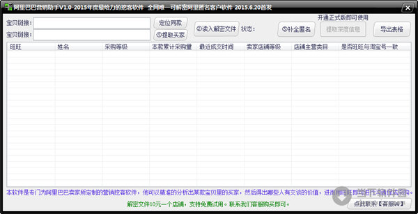 阿里巴巴营销助手是一款可以采集阿里买家的阿里营销软件,支持采集并分析指定店铺精准到宝贝的优势买家,采集的信息包括旺旺、姓名、采购等级、累计采购量、成交时间、淘宝店铺等级、店铺主营等,采集完成后,通过旺旺交谈达到业务拓展的目的。