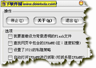 一个可以抓取网页中的FLASH的小程序,不但可以抓取普通的FLASH,也可以抓取网页中设定为背景透明的FLASH,HOOK技术,启动本程序后,然后将鼠标移动到您想抓取的FLASH上方时 ,会自动弹出保存界面,点击即可,(见图)文件获得采用读缓冲区的方式,简单实用,功能强大